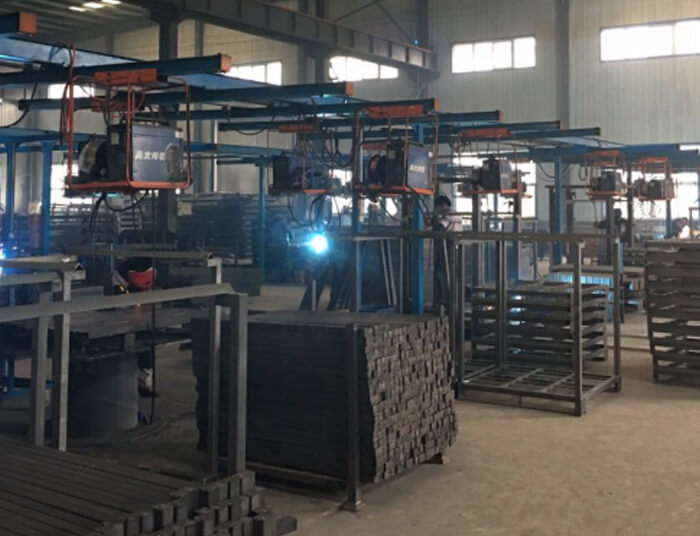 熱烈祝賀山東安貝智能物流設備有限公司成立2周年,12000平方米的寬敞車間,先進的自動化生產設備。記著多年前,中國重汽一位老生產部長劉玉和先生說過一句話,至今在我們公司還是座右銘:“降低成本靠的是精益化細節管理,管理不好成本就高”,雖然是增效降耗其中之一措施,這應該是依據實實在在的忠告。我們總經理常說:“只有自身實力大,才能打天下”,近兩年我們一直致力于硬實力(先進設備、人才培養、團隊建設)和軟實力提升(想辦法讓骨干員工天天快樂工作,自愿工作,忙不累)。當前我們已經實現日產1000塊鋼托盤的生產能力,并且繼續努力改變現狀。 我們當前已經擁有2條鋼托盤生產線,共43個人工焊位,下半年完成第三條焊接線,配備6臺焊接機器人。